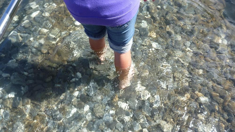 Kneippen im Bergbach unterwegs mit dem VW Bus